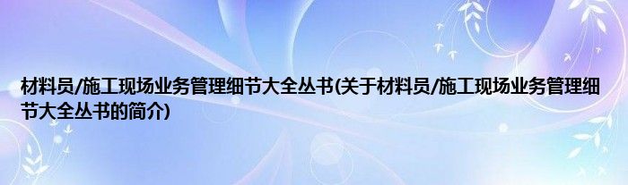 本文关于材料员/施工现场业务管理细节大全丛书的简介就讲解完毕,希望对大家有所帮助。