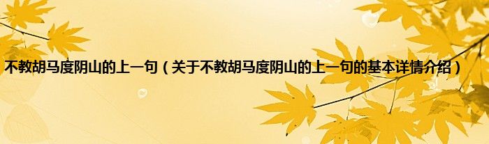 本文关于不教胡马度阴山的上一句的基本详情介绍就讲解完毕,希望对大家有所帮助。