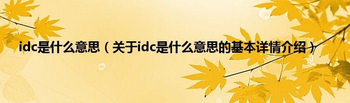 本文关于idc是什么意思的基本详情介绍就讲解完毕,希望对大家有所帮助。