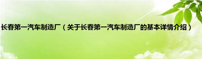 长春第一汽车制造厂(关于长春第一汽车制造厂的基本详情介绍)