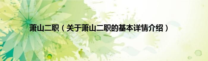 本文关于萧山二职的基本详情介绍就讲解完毕,希望对大家有所帮助。