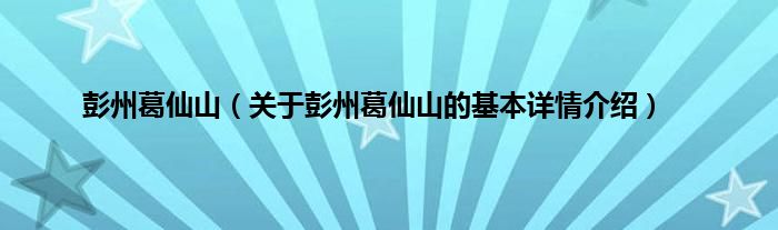本文关于彭州葛仙山的基本详情介绍就讲解完毕,希望对大家有所帮助。