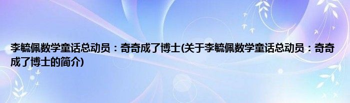 本文关于李毓佩数学童话总动员:奇奇成了博士的简介就讲解完毕,希望对大家有所帮助。