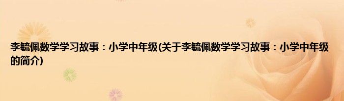 本文关于李毓佩数学学习故事:小学中年级的简介就讲解完毕,希望对大家有所帮助。