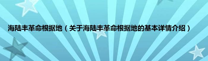 本文关于海陆丰革命根据地的基本详情介绍就讲解完毕,希望对大家有所帮助。