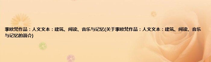 本文关于李欧梵作品:人文文本:建筑、阅读、音乐与记忆的简介就讲解完毕,希望对大家有所帮助。