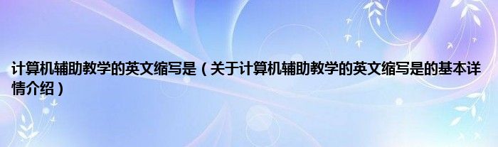 本文关于计算机辅助教学的英文缩写是的基本详情介绍就讲解完毕,希望对大家有所帮助。