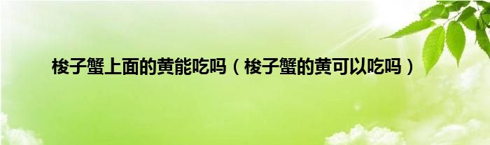 三疣梭子蟹是一种海蟹。它生长的环境可能使蟹黄含有海洋毒素。可以吃,但一般不建议吃。能不能吃到蟹黄,要看它所处的水环境。如果生长在好的水域,体内含有的污染物较少,蟹黄吸收污染物的能力比蟹肉强。