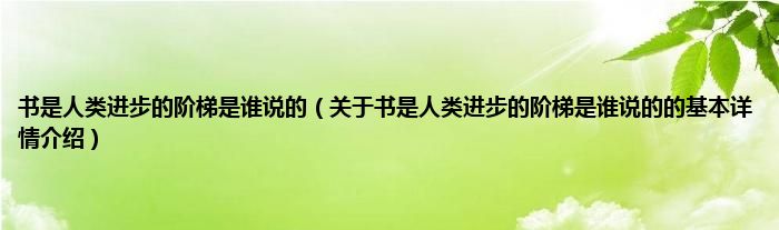 本文关于书是人类进步的阶梯是谁说的的基本详情介绍就讲解完毕,希望对大家有所帮助。