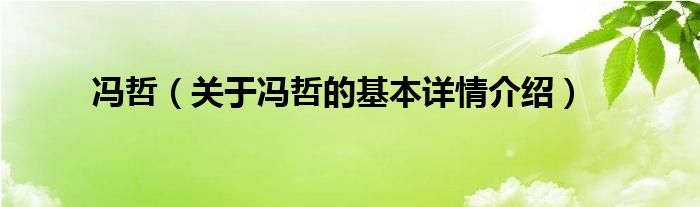 本文关于冯哲的基本详情介绍就讲解完毕,希望对大家有所帮助。