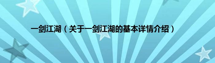 本文关于一剑江湖的基本详情介绍就讲解完毕,希望对大家有所帮助。