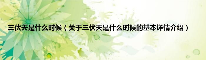 本文关于三伏天是什么时候的基本详情介绍就讲解完毕,希望对大家有所帮助。
