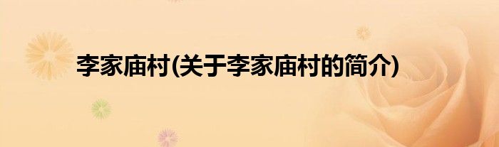 本文关于李家庙村的简介就讲解完毕,希望对大家有所帮助。