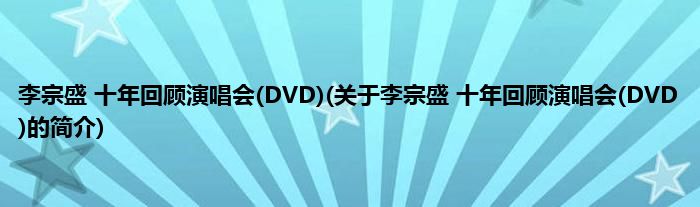 本文关于李宗盛 十年回顾演唱会(DVD)的简介就讲解完毕,希望对大家有所帮助。