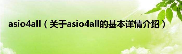 本文关于asio4all的基本详情介绍就讲解完毕,希望对大家有所帮助。