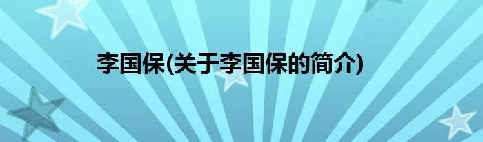 大家好,李国保,关于李国保的简介很多人还不知道,现在让我们一起来看看吧!