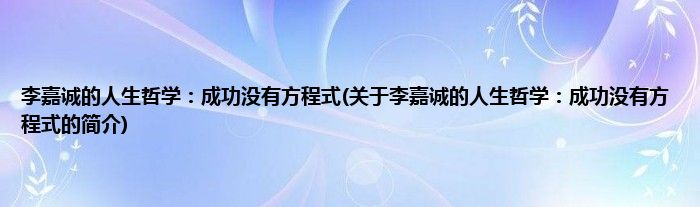 本文关于李嘉诚的人生哲学:成功没有方程式的简介就讲解完毕,希望对大家有所帮助。