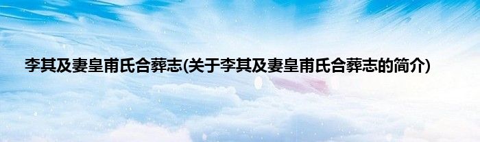 本文关于李其及妻皇甫氏合葬志的简介就讲解完毕,希望对大家有所帮助。