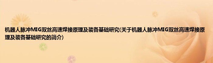 机器人脉冲MIG双丝高速焊接原理及装备基础研究(关于机器人脉冲MIG双丝高速焊接原理及装备基础研究的简介)
