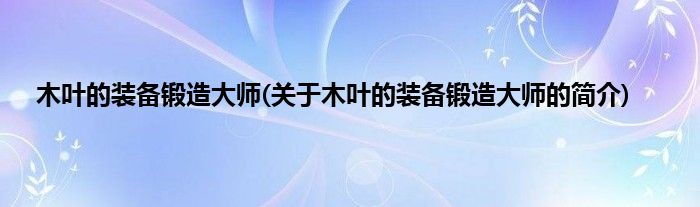 大家好,木叶的装备锻造大师,关于木叶的装备锻造大师的简介很多人还不知道,现在让我们一起来看看吧!
