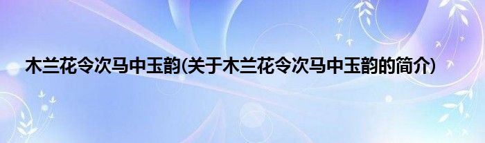 本文关于木兰花令次马中玉韵的简介就讲解完毕,希望对大家有所帮助。