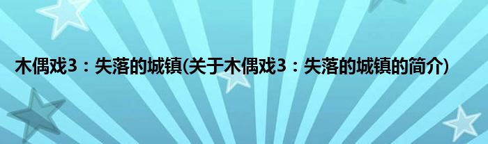 大家好,木偶戏3:失落的城镇,关于木偶戏3:失落的城镇的简介很多人还不知道,现在让我们一起来看看吧!