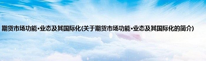 大家好,期货市场功能·业态及其国际化,关于期货市场功能·业态及其国际化的简介很多人还不知道,现在让我们一起来看看吧!