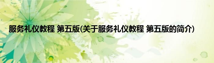 大家好,服务礼仪教程 第五版,关于服务礼仪教程 第五版的简介很多人还不知道,现在让我们一起来看看吧!