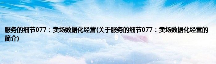 本文关于服务的细节077:卖场数据化经营的简介就讲解完毕,希望对大家有所帮助。