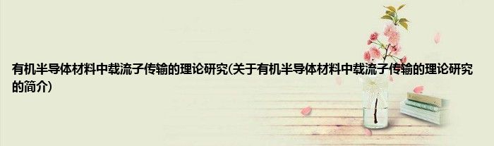 大家好,有机半导体材料中载流子传输的理论研究,关于有机半导体材料中载流子传输的理论研究的简介很多人还不知道,现在让我们一起来看看吧!