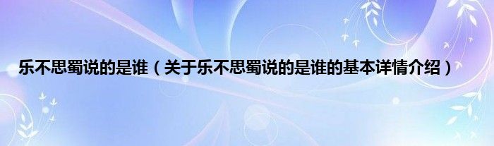 本文关于乐不思蜀说的是谁的基本详情介绍就讲解完毕,希望对大家有所帮助。