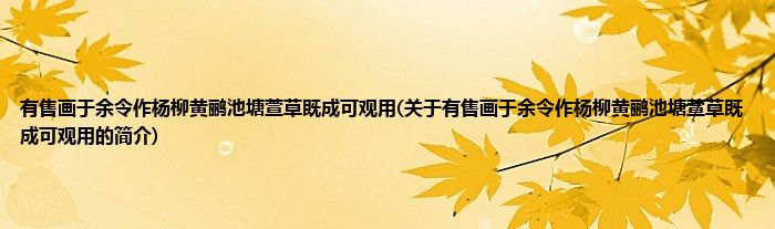 本文关于有售画于余令作杨柳黄鹂池塘萱草既成可观用的简介就讲解完毕,希望对大家有所帮助。
