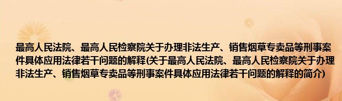 本文关于最高人民法院、最高人民检察院关于办理非法生产、销售烟草专卖品等刑事案件具体应用法律若干问题的解释的简介就讲解完毕,希望对大家有所帮助。