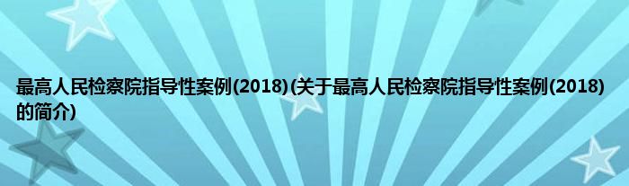 大家好,最高人民检察院指导性案例,2018,关于最高人民检察院指导性案例,2018的简介很多人还不知道,现在让我们一起来看看吧!