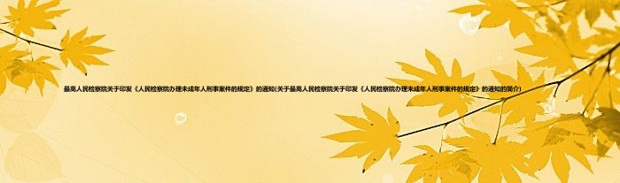 大家好,最高人民检察院关于印发《人民检察院办理未成年人刑事案件的规定》的通知,关于最高人民检察院关于印发《人民检察院办理未成年人刑事案件的规定》的通知的简介很多人还不知道,现在让我们一起来看看吧!