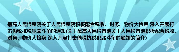 本文关于最高人民检察院关于人民检察院积极配合税收、财务、物价大检察,深入开展打击偷税抗税犯罪斗争的通知的简介就讲解完毕,希望对大家有所帮助。
