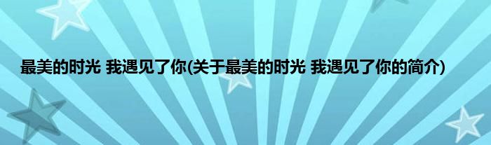 大家好,最美的时光,我遇见了你,关于最美的时光,我遇见了你的简介很多人还不知道,现在让我们一起来看看吧!