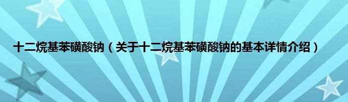 本文关于十二烷基苯磺酸钠的基本详情介绍就讲解完毕,希望对大家有所帮助。