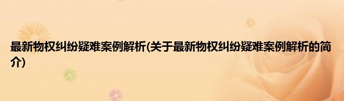 本文关于最新物权纠纷疑难案例解析的简介就讲解完毕,希望对大家有所帮助。