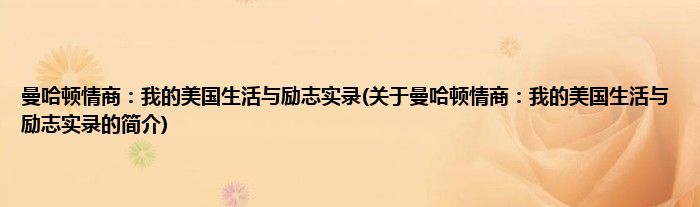 大家好,曼哈顿情商:我的美国生活与励志实录,关于曼哈顿情商:我的美国生活与励志实录的简介很多人还不知道,现在让我们一起来看看吧!