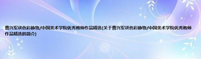 本文关于曹兴军谈色彩静物/中国美术学院优秀教师作品精选的简介就讲解完毕,希望对大家有所帮助。