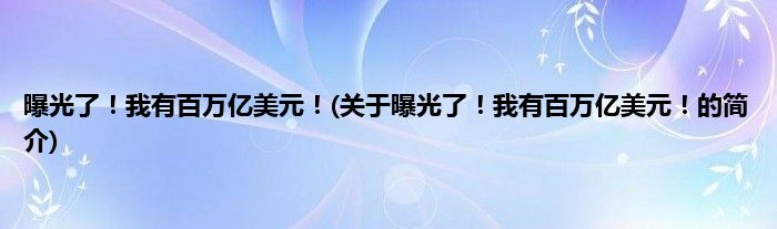 大家好,曝光了!我有百万亿美元!,关于曝光了!我有百万亿美元!的简介很多人还不知道,现在让我们一起来看看吧!