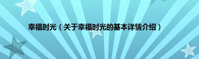 本文关于幸福时光的基本详情介绍就讲解完毕,希望对大家有所帮助。