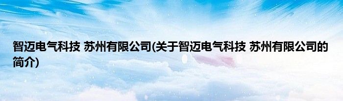 智迈电气科技苏州有限公司(关于智迈电气科技苏州有限公司的简介)