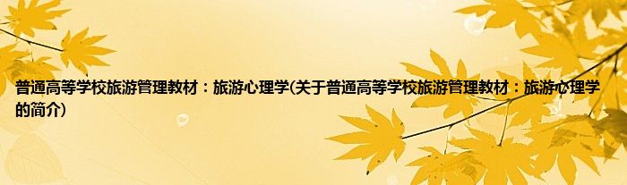 本文关于普通高等学校旅游管理教材:旅游心理学的简介就讲解完毕,希望对大家有所帮助。