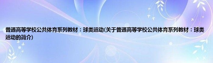本文关于普通高等学校公共体育系列教材:球类运动的简介就讲解完毕,希望对大家有所帮助。