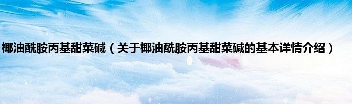 本文关于椰油酰胺丙基甜菜碱的基本详情介绍就讲解完毕,希望对大家有所帮助。