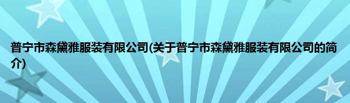 本文关于普宁市森黛雅服装有限公司的简介就讲解完毕,希望对大家有所帮助。