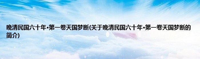 本文关于晚清民国六十年·第一卷天国梦断的简介就讲解完毕,希望对大家有所帮助。