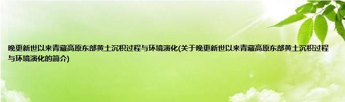 大家好,晚更新世以来青藏高原东部黄土沉积过程与环境演化,关于晚更新世以来青藏高原东部黄土沉积过程与环境演化的简介很多人还不知道,现在让我们一起来看看吧!